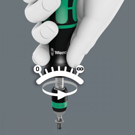 Отвёртка-битодержатель динамометрическая 2.5-11.5 in·lbf патрон Rapidaptor 1/4" D6.3/F6.3 Kraftform серия 7445 Wera WE-074710