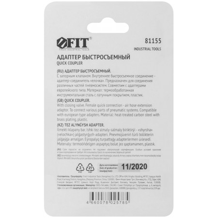 Адаптер быстросъемный с запорным клапаном с "елочкой" 6 мм (81155)
