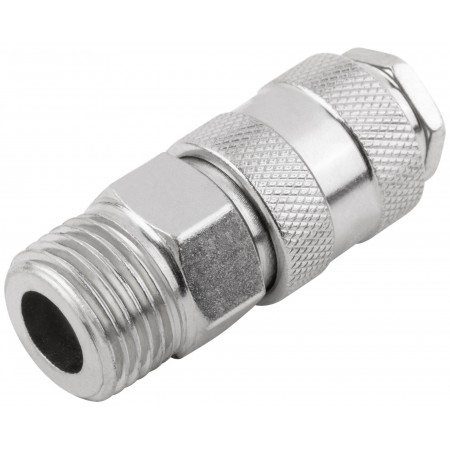 Адаптер быстросъемный. С запорным клапаном. Внутреннее быстросъемное соединение - внешняя резьба. Предназначен для соединения различных частей пневмосистем. Совместим с адаптерами европейского и американского типа. Материал: инструментальная сталь с никелевым антикоррозийным покрытием. Упаковка: блистер.