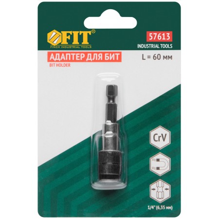 Адаптер для бит с магнитным фиксатором и защелкой для быстрой смены бит, 60 мм (57613)