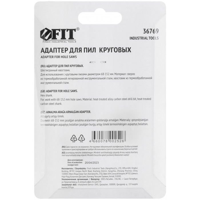 Шестигранный хвостик. Для пил круговых 36771-36798. Материал: инструментальная сталь, сверло из легированной инструментальной стали. Упаковка: блистер.