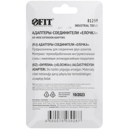 Адаптеры-соединители ''елочка''. Предназначены для соединения двух шлангов. Материал: инструментальная сталь с никелевым антикоррозийным покрытием. Упаковка: блистер.