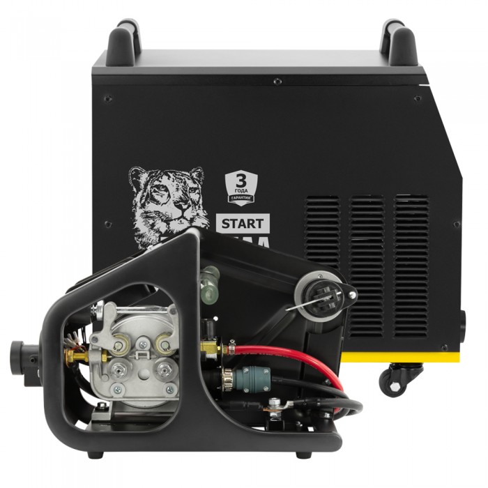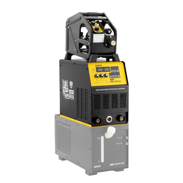 БАРСВЕЛД START MIG-350 D2 – абсолютно новая модель в линейке сварочных полуавтоматов БАРСВЕЛД, с помощью которой можно быстро решить множество сварочных задач. Использование современных компонентов и технологий, таких как IGBT-модули, системы широтно-импульсной модуляции и выпрямительно-волновой фильтрации позволили получить на выходе постоянный сварочный ток силой 350 А, используя для подключения промышленную сеть 380 В. Это дало возможность выполнять сварку изделий из черных и цветных металлов покрытым электродом диаметром от 1,6 до 6 мм в режиме MMA и электродной проволокой диаметром от 0,8 до 1,2 мм в режиме MIG/MAG. Сварка различных типов металла в нескольких режимах и высокий сварочный ток в сочетании с хорошим для своего класса периодом нагрузки 60% позволила модели БАРСВЕЛД START MIG-350 D2 стать незаменимым помощником не только в небольших мастерских, но и в условиях массового производства. БАРСВЕЛД START MIG-350 D2 отличается: - широкой сферой применения; - стабильной работой даже при падении напряжения до 185 В; - максимальным значением силы тока 350 А; - возможностью сварки тонких деталей без деформаций или прожогов на поверхности; - 3-х летним сроком гарантии. В аппарате реализована синергетическая система управления, которая полностью оптимизирует циклограмму сварки в зависимости от выбранных начальных параметров. Кроме того, в аппарате предусмотрена возможность ручной настройки напряжения и индуктивности дуги, нарастания, спада и рабочей силы сварочного тока, а также времени начальной и окончательной продувки газом сварочной ванны. Продуманная панель управления позволяет настроить все эти параметры буквально в одно касание и контролировать их значение при помощи двух ярких дисплеев. Особо стоит отметить возможность настройки жесткости дуги, которая оптимизирует капельный перенос металла и снижает тепловложение, благодаря чему даже начинающий сварщик может работать с тонкими деталями, не оставляя прожогов и не деформируя их. Еще одной особенностью БАРСВЕЛД START MIG-350 D2 является отдельный механизм подачи проволоки, в который можно установить стандартные катушки весом до 15 кг и работать на большом удалении от источника тока. Открытое исполнение облегчает замену катушек и обеспечивает постоянный контроль за остатками проволоки. Также, для облегчения полуавтоматической сварки, производитель предусмотрел возможность быстрой смены режимов работы горелки 2Т/4Т, с которыми очень удобно выполнять длинные и короткие сварочные швы. БАРСВЕЛД START MIG-350 D2 – это не просто многофункциональный сварочный полуавтомат, это удобство, надежность и качество проверенное временем и подтверждающееся 3-х летней гарантией производителя.