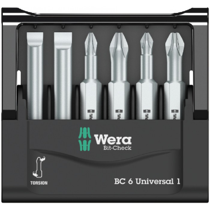 Набор бит торсионных 6 Universal 1, 6 пр., 1/4" E6.3 Bit-Check WE-056474