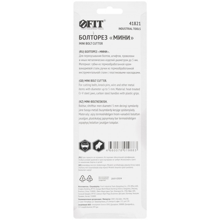 Для перекусывания закаленной проволоки, болтов, штифтов и других закаленных металлических изделий диаметром до 2 мм, а также незакаленной проволоки и других незакаленных металлических изделий до 3,5 мм. Материал: хром-ванадиевая сталь, пластиковые ручки.