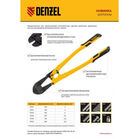 Болторез 760 мм 30", Cr-Mo Denzel