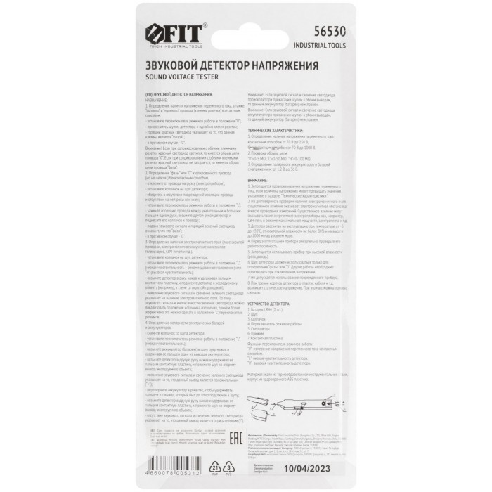 Позволяет определить наличие переменного напряжения в сети, «фазы» или «0» контактным или бесконтактным способом, скрытую проводку, вредные электромагнитные излучения (монитор, телевизор и т.д.), полярность постоянного напряжения, исправность электрических приборов, состояние батареи или аккумулятора. Материал: жало из инструментальной стали, пластиковый корпус. Упаковка: блистер.