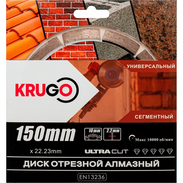 Диск алмазный сегментированный (кирпич, бетон, гранит) 150 x 2.2 x 22.23 x 10mm KRUGO (RSA06A)