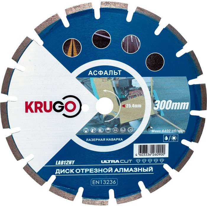 Диск алмазный сегментный по асфальту (лазерная наварка) 300x25.4x40x2.8x10/17mm KRUGO (LAB12HY)