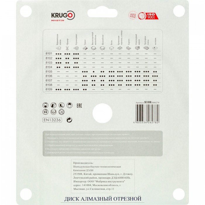 Диск алмазный сплошной ультратонкий KRUGO MASTER 200х2,4х22,2х10 mm 81082000279