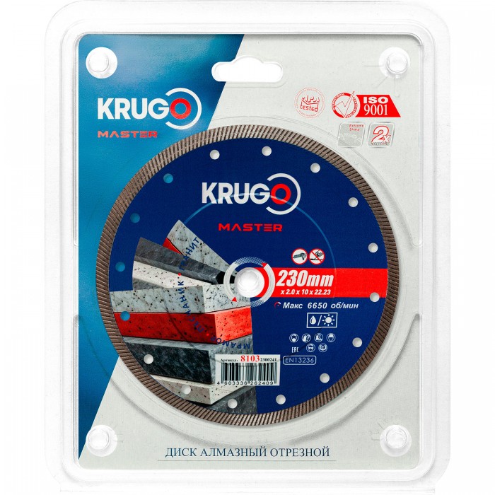 Диск алмазный Турбо ультратонкий для твердых материалов KRUGO MASTER 230х2,0х22,2х10 mm 81032300241