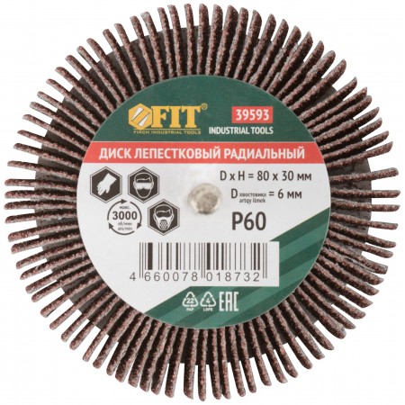 Диск лепестковый для дрели радиальный 80х30х6 мм Р 60 (39593)