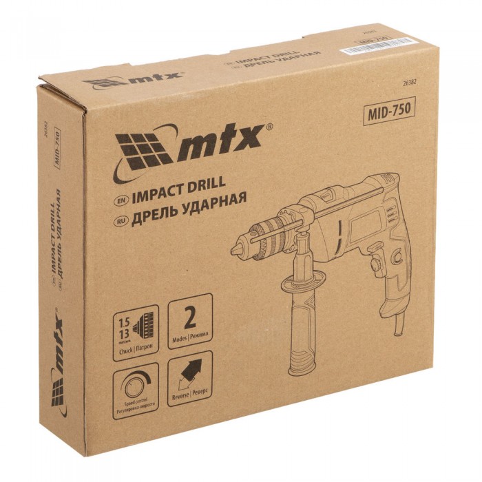 Дрель ударная MID-750, 750 Вт, 0-3000 об/мин, 0-48000 уд/мин MTX (26382)