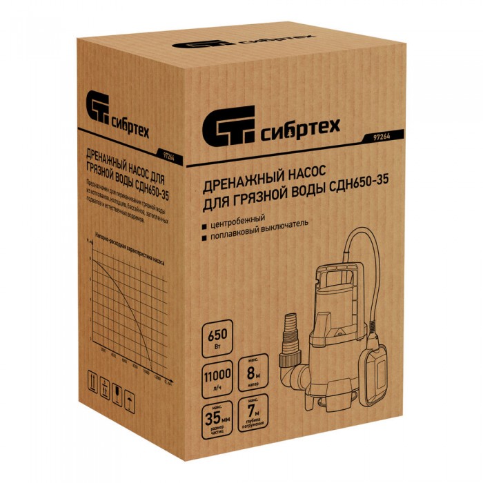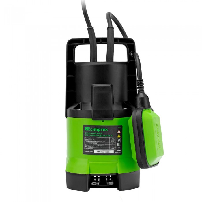 Дренажный насос для грязной воды СДН650-35, 650 Вт, напор 8 м, 11000 л/ч Сибртех (97264)