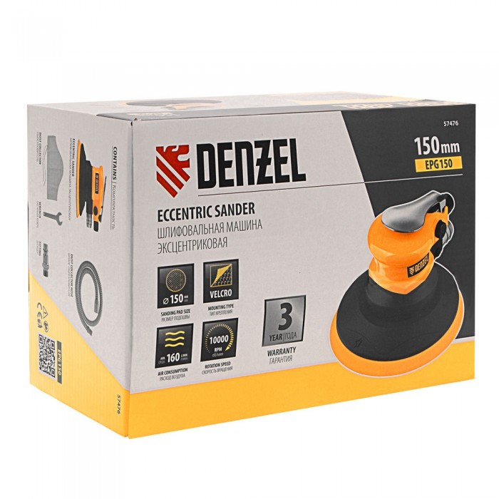 Эксцентриковая шлифовальная машина EPG150, 150 мм, 10000 об/мин, 5 мм, 160 л/мин Denzel (57476)
