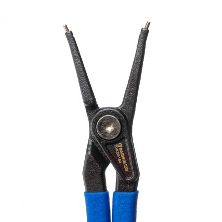 Съемник внутренних стопорных колец усиленный, прямой Garwin 704033 из хром-ванадиевой стали и ручками из эргономичного нескользящего полимера. Наконечники - высокопрочная подшипниковая сталь. Съемник работает на сжим. Длина инструмента - 230 мм.