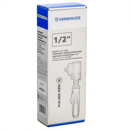 Гайковерт пневматический ударный, усиленный, 1/2" 500 Нм (51 кГм), угловой, с повортным ударным механизмом, GARWIN INDUSTRIAL, 800527-12-1508