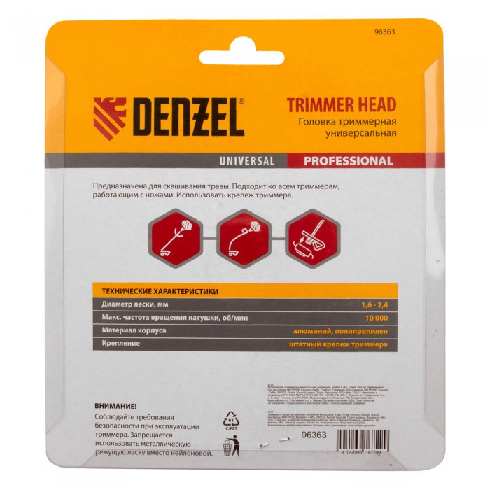 Головка триммерная универсальная алюминий, шайба 8 мм, 10 мм Denzel (96363)