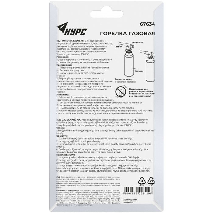 С пьезоподжигом. Для розжига. костра, нагрева предметов и различных ремонтных работ. С регулятором уровня пламени. Используется со стандартным цанговым газовым баллоном.