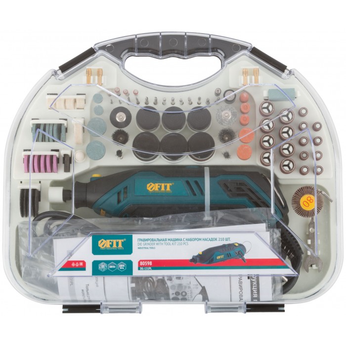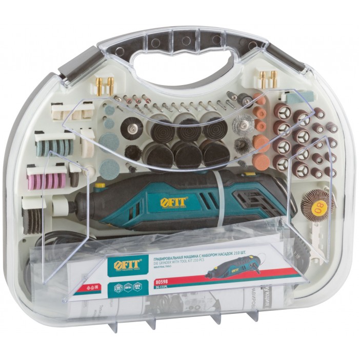 Гравировальная машина 130 Вт; 10000-35000 об/мин; 2,4/3,2 мм; БС щеток; набор насадок 210 шт.; кейс (80598)