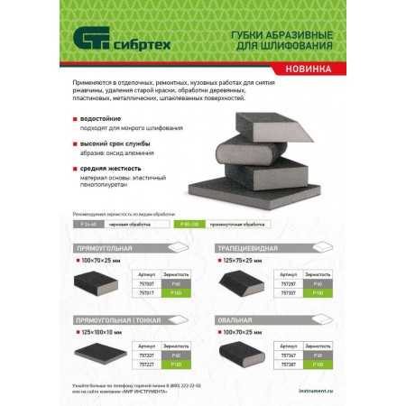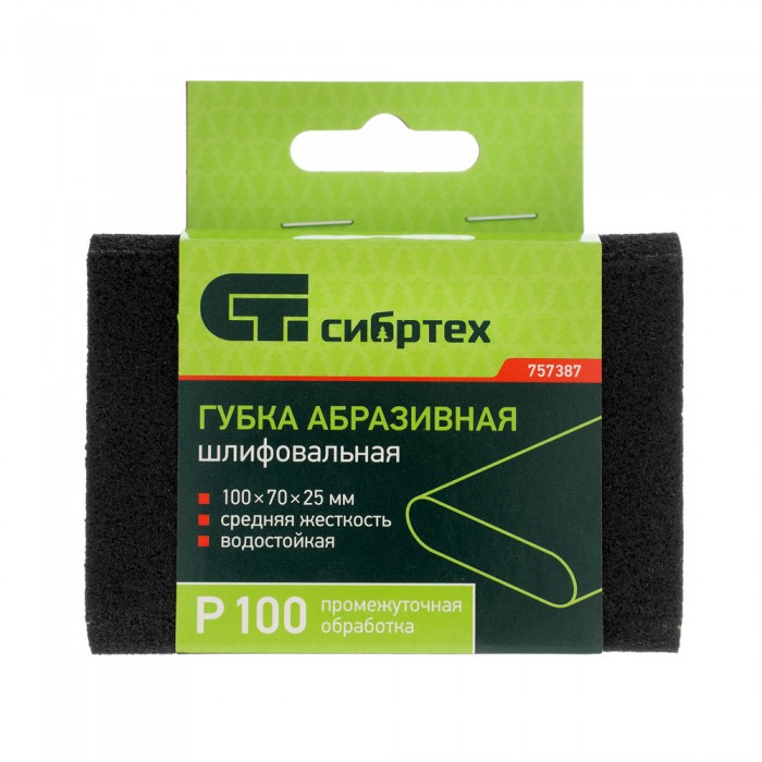 Губка для шлифования, 100 х 70 х 25 мм, овал, Средняя жесткость, P 100 Сибртех (757387)