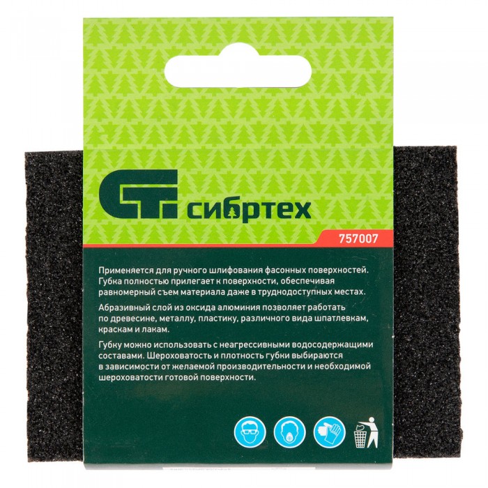 Губка для шлифования, 100 х 70 х 25 мм, средняя жесткость, P 60, Сибртех (757007)