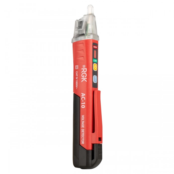 Если необходимо проверить линию с толстым слоем изоляции или протестировать электроприборы, микросхемы и т.д, то следует перевести детектор переменного напряжения RGK AC-10 в низковольтным режим коротким нажатием на кнопку включения.