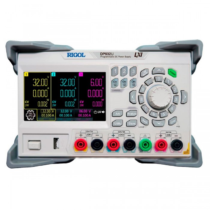 Rigol DP932U - программируемый лабораторный источник питания с 3 электрически изолированными независимыми каналами максимальной общей мощностью 210 Вт.