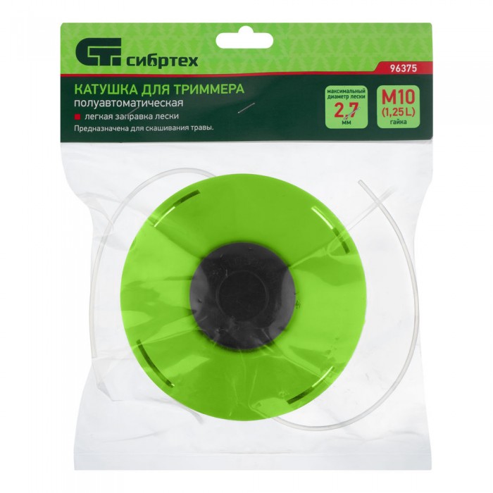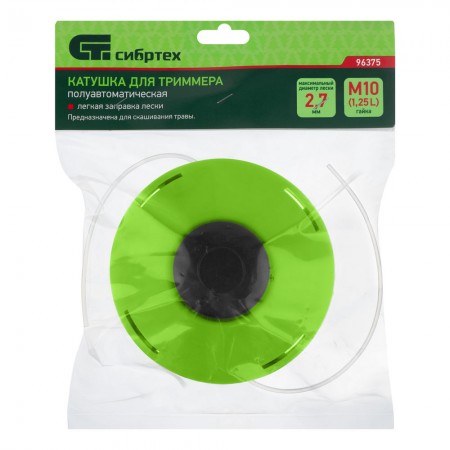 Катушка для триммера полуавтомат легкая заправка лески, гайка М10х1,25 левая Сибртех (96375)
