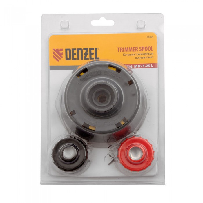 Катушка триммерная полуавтомат, быстрая заправка, шестигранник HEX х 15/6, болт 5/16 левый, М8 левый Denzel (96364)