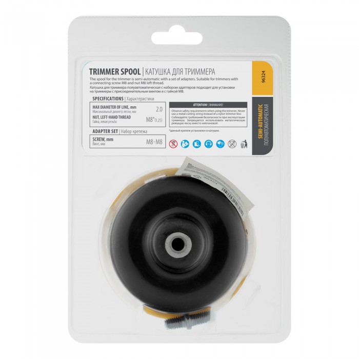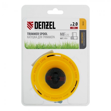 Катушка триммерная полуавтоматическая, легкая заправка лески, гайка M8x1.25, винт M8-M8 Denzel (96324)