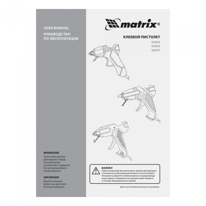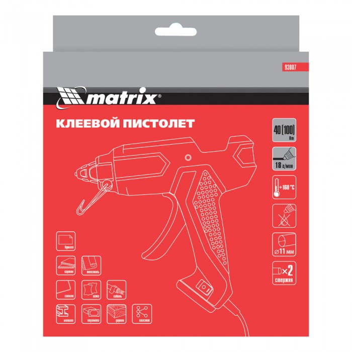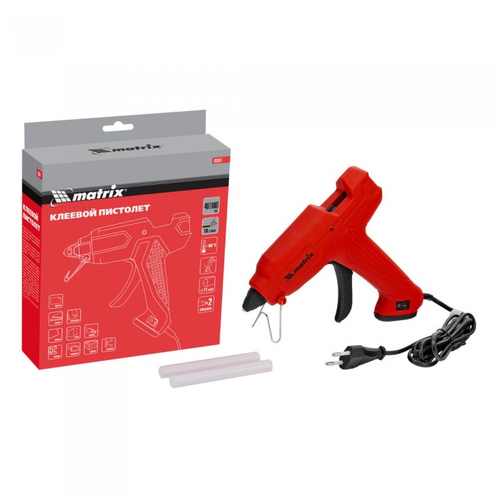 Клеевой пистолет, 11 мм, 40 (100) Вт, 18 г/мин, выключатель и индикатор напряжения Matrix (93007)