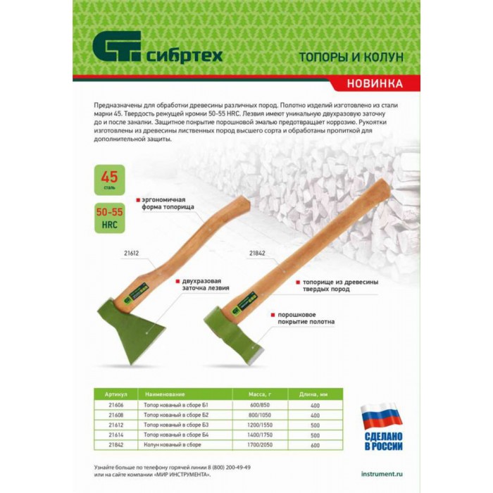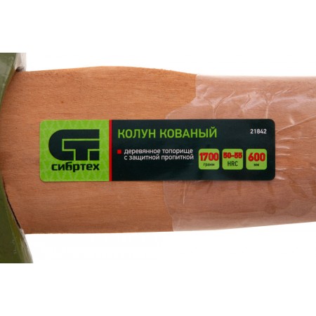 Колун кованный, в сборе, 1700/2050 г, деревянное топорище, 600 мм Сибртех