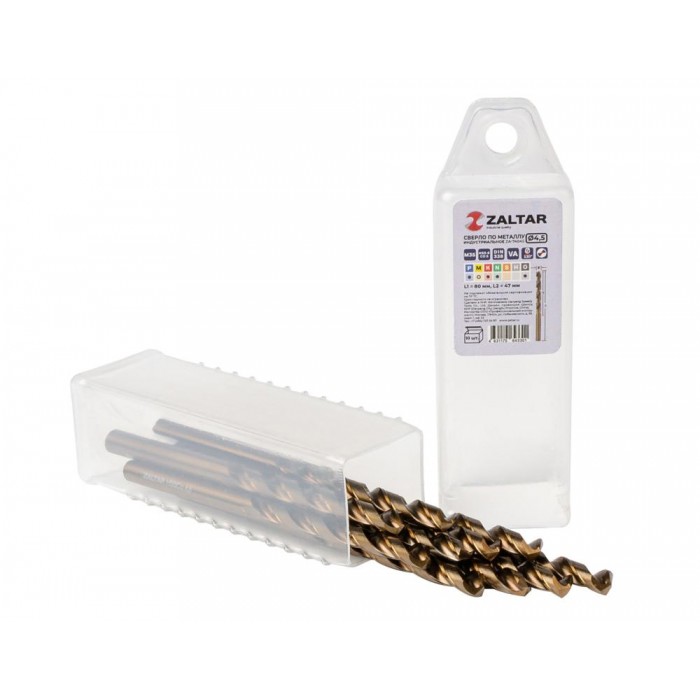 Комплект свёрл по металлу индустриальных, 10 шт, DIN 338, HSS-E Co5, Тип VA, 5xD, O4.50 мм (ZA-74045-S10)