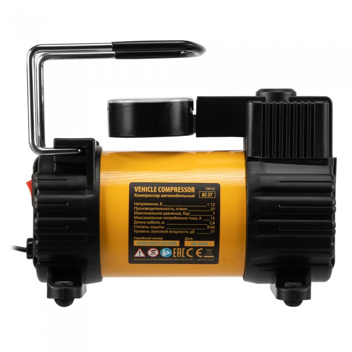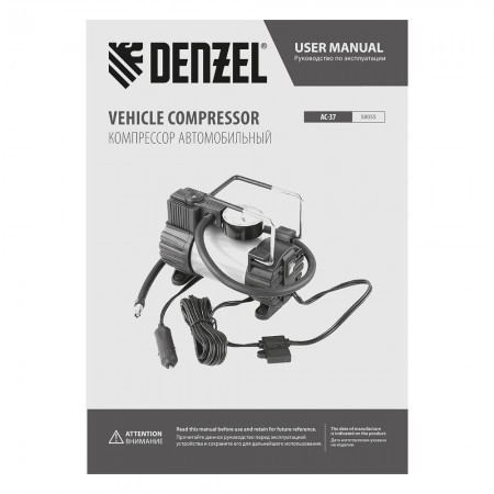 Компрессор автомобильный AC-37, 12 В, 7 атм, 37 л/мин, автомобильный предохранитель Denzel (58055)