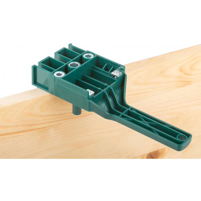 Самоцентрирующийся. Для точного позиционирования сверла перед сверлением отверстия под мебельный шкант. Съемный регулируемый упор и три паза на корпусе (6 / 8 / 10 мм) для точного сверления в ответной детали. 4 ограничителя для быстрого расположения направляющей по центру ширины заготовки. 3 диаметра направляющих: 6 / 8 / 10 мм. Метрическая шкала на двух сторонах корпуса. Материал: корпус из ударопрочного ABS пластика, направляющие из инструментальной стали. Упаковка: картонная коробка.