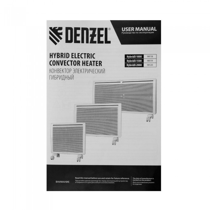 Конвектор гибридный электрический HybridX-2000, ИК нагреватель, цифровой термостат Denzel (98120)