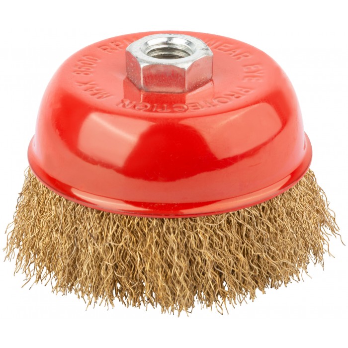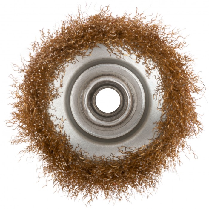 Тип «чаша». Для УШМ. С гайкой М14. Материал: стальная латунированная проволока. Упаковка: картонная коробка.