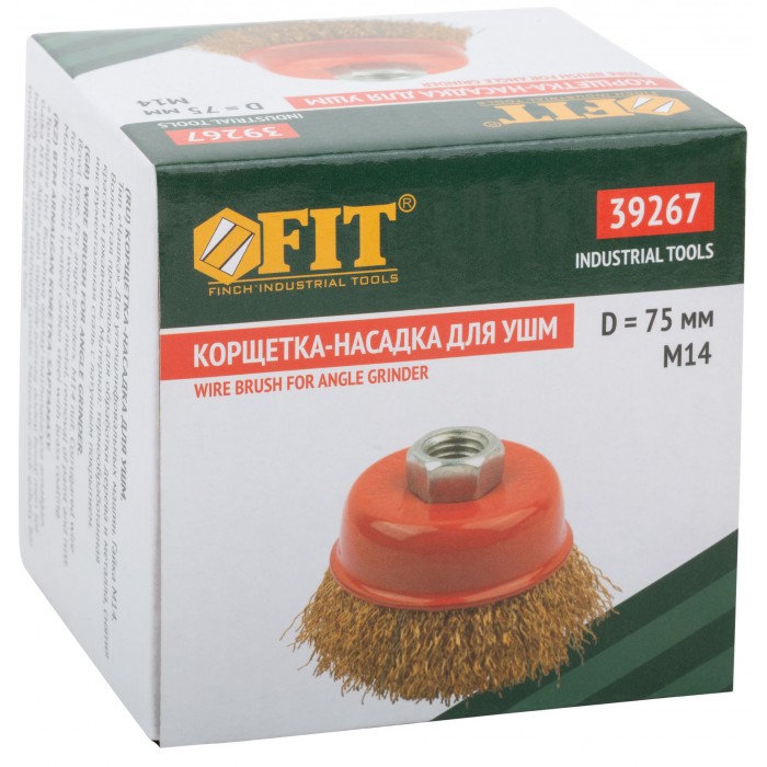 Тип «чашка», гайка М14. Для УШМ. Стальная латунированная, волнистая проволока. Упаковка: картонная коробка.