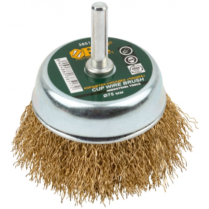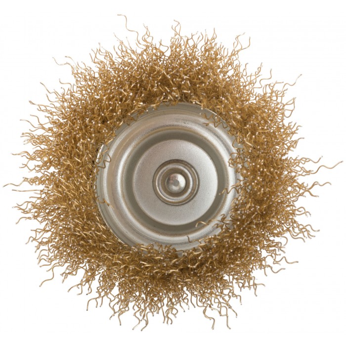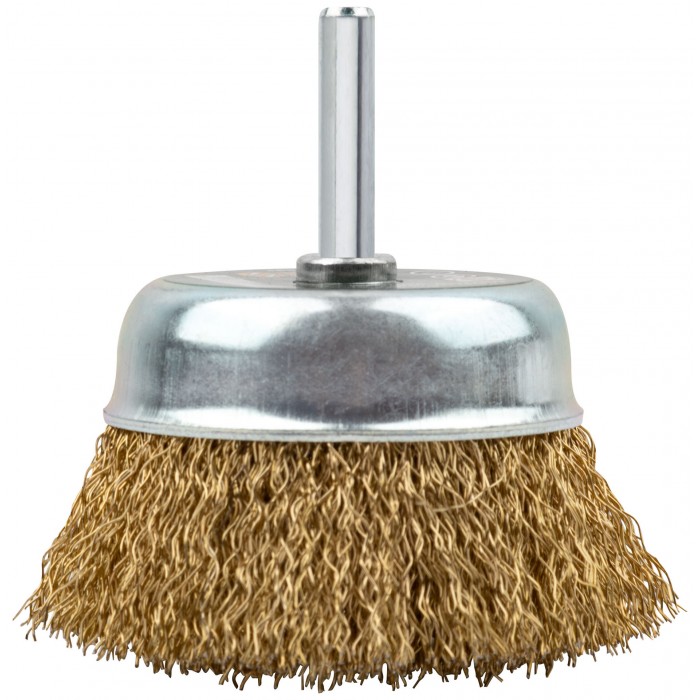 Корщетка-чашка, со штифтом, стальная латунированная волнистая проволока 75 мм (38517)