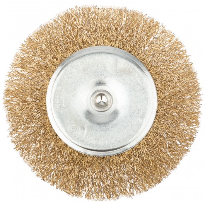 Корщетка дисковая прямая, со шпилькой, стальная латунированная волнистая проволока 100 мм (38465)