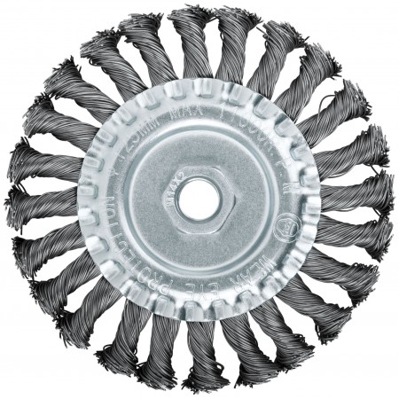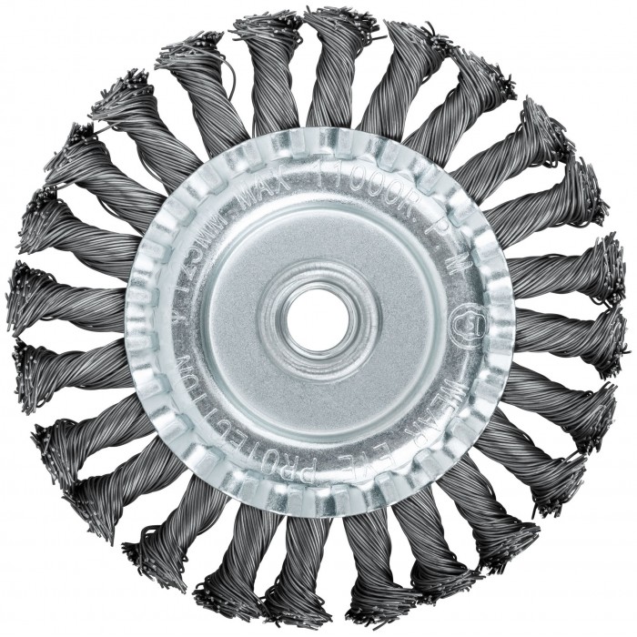 Тип «Колесо», гайка М14. Для УШМ. Витая стальная проволока. Материал: инструментальная сталь. Упаковка: картонная коробка.