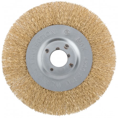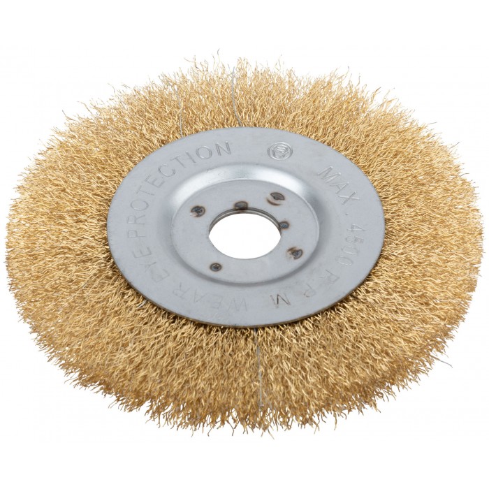 Корщетка-колесо, посадочный диаметр 22,2 мм, стальная латунированная волнистая проволока 150 мм (39066)