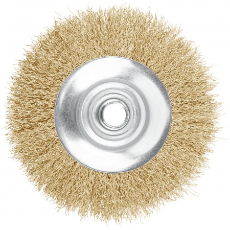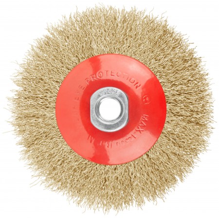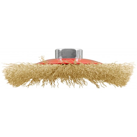 Корщетка-колесо с наклоном, гайка М14, стальная латунированная волнистая проволока 115 мм (39051)