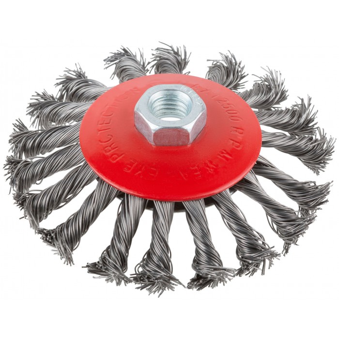 Корщетка-колесо с наклоном, гайка М14, стальная витая проволока 115 мм (39034)