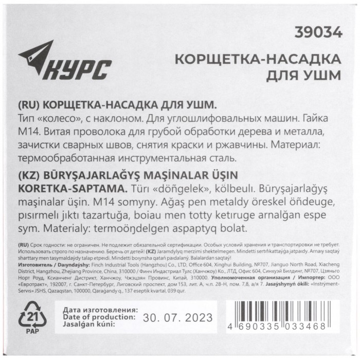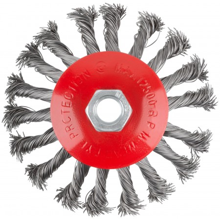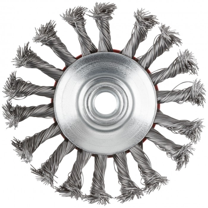 Тип ''колесо'', с наклоном. Для УШМ. Гайка М14. Материал: стальная витая проволока. Упаковка: картонная коробка.
