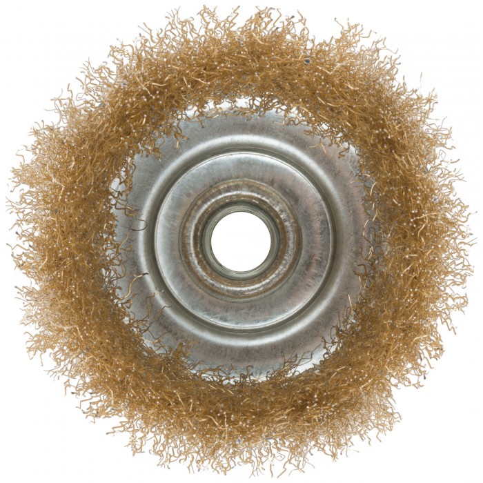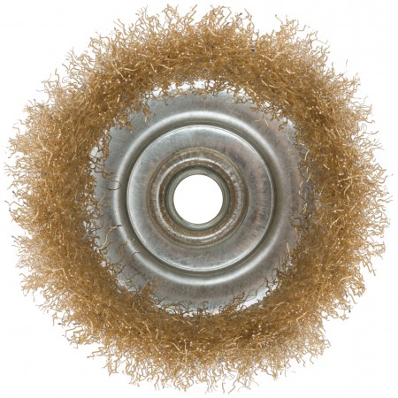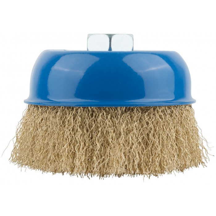 Корщетка, тип "чашка", гайка М14, стальная латунированная волнистая проволока 100 мм (38943М)