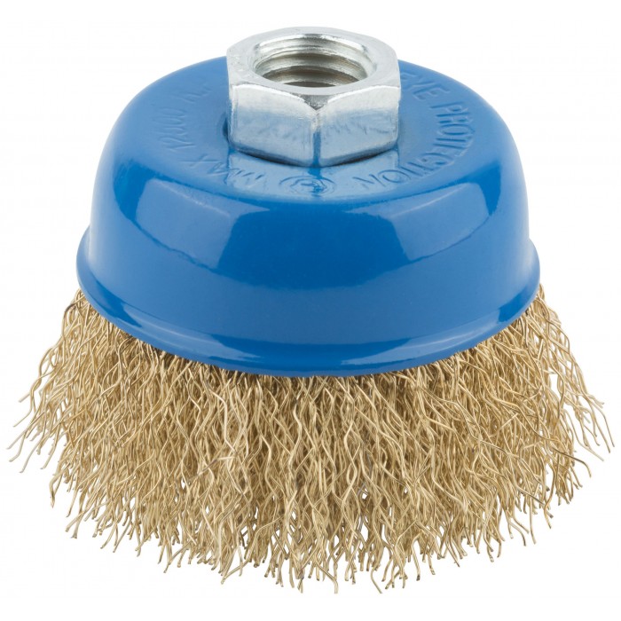 Корщетка, тип "чашка", гайка М14, стальная латунированная волнистая проволока 65 мм (38941М)