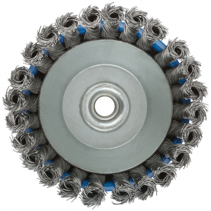 Тип «чашка». Для УШМ. Для очистки поверхностей от краски и ржавчины. Гайка М14. Витая проволока. Материал: инструментальная сталь. Упаковка: картонная коробка.