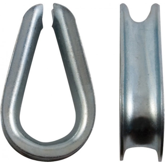 Изготовлен из стали, покрытие - белый цинк. Применяется в различных грузоподъемных устройствах, а также предназначен для установки на трос (канат), при создании петли, предохраняя его от перетирания.